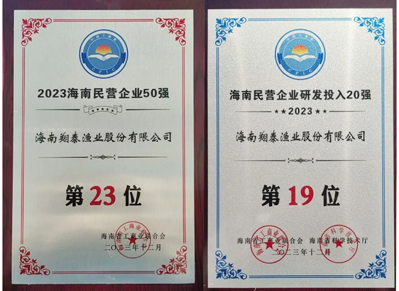 近日,“2023海南民營(yíng)企業(yè)50強(qiáng)”和“2023海南民營(yíng)企業(yè)研發(fā)投入20強(qiáng)”榜單陸續(xù)發(fā)布,海南翔泰漁業(yè)股份有限公司(以下簡(jiǎn)稱(chēng)“翔泰”)憑借良好的企業(yè)運(yùn)營(yíng)表現(xiàn)位列“2023海南民營(yíng)企業(yè)50強(qiáng)”第23名及“2023海南民營(yíng)企業(yè)研發(fā)投入20強(qiáng)”第19名。較2022年的排名上升了3位。