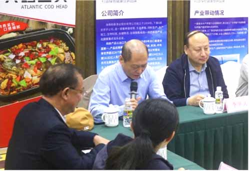 會(huì)上,澄邁縣委常委、副縣長(zhǎng)林瑞文紹了澄邁縣農(nóng)業(yè)和農(nóng)特產(chǎn)品有關(guān)情況。海南翔泰漁業(yè)股份有限公司董事長(zhǎng)劉榮杰介紹了公司水產(chǎn)品從育苗、養(yǎng)殖、加工、倉(cāng)儲(chǔ)、貿(mào)易等全產(chǎn)業(yè)鏈經(jīng)營(yíng)情況。