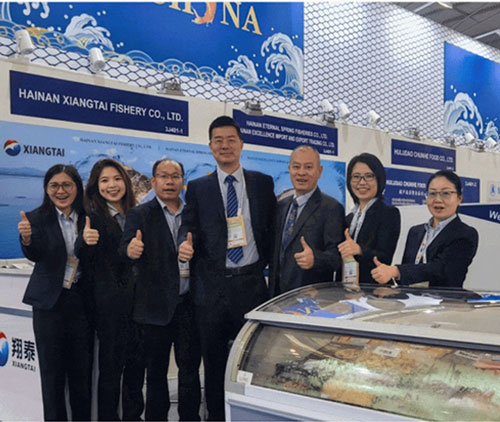 (↑↑上圖是翔泰參加2023美國波士頓國際水產(chǎn)展和2023巴塞羅那全球海鮮博覽會↑↑)